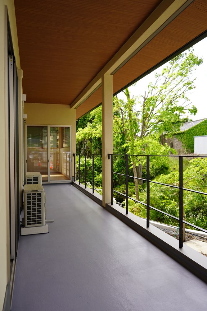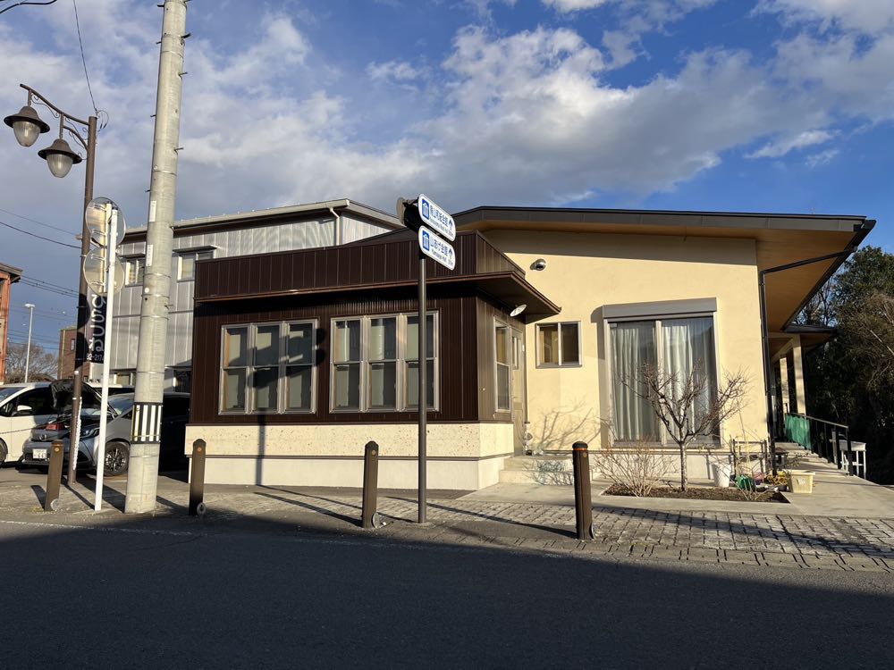 和を基調としたシンプルなデザイン。箱型連装窓ダークブラウン大谷石外壁の洋室が街並みにアクセントを与えています。