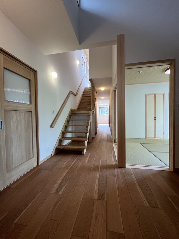 和モダン。シンプルな空間のなかに施主のこだわりが散りばめられています。家の中心に位置する階段は迫力があります。